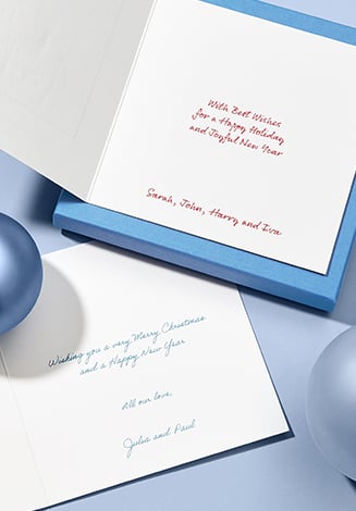 Celebrate the season with a bespoke Christmas card. From whimsical animals to timeless traditions, discover designs for everyone on your list. Exquisitely engraved on our signature White Wove card with silver or gold accents, each comes in a hand-tissue-lined envelope.